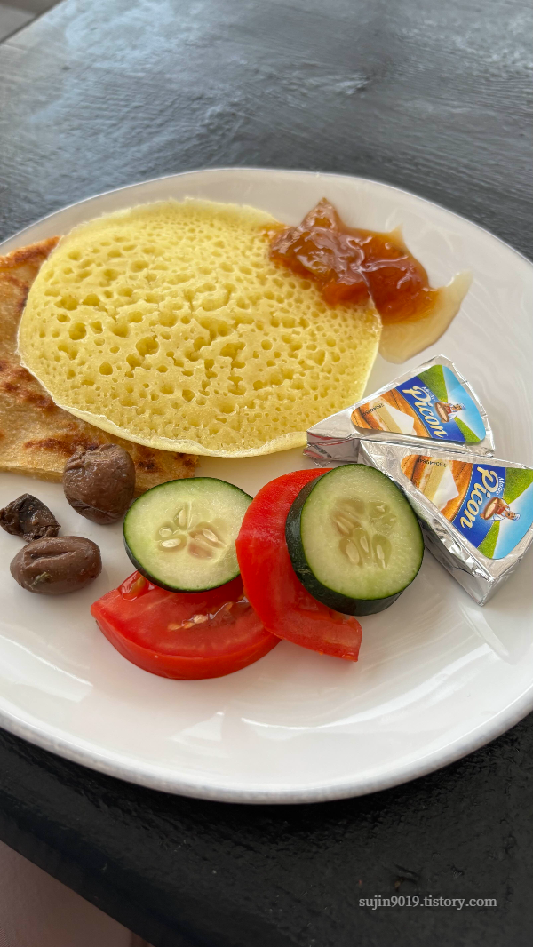 모로코에서 제일 맛있었던 음식이 뭐냐고 묻는다면 단연 숙소에서 제공한 조식이라고 말하고 싶다. 사실 특별할 것도 없었던 일반적인 빵과 잼들이었는데, 그만큼 모로코에서 먹었던 것들이 특별히 맛있는 게 없었던 것 같다.