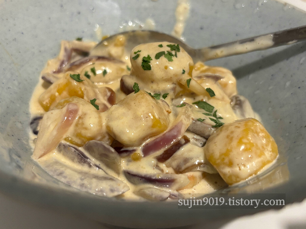 집 와서는 내일 먹을 도시락을 만들기. 쇼디치 편집샵에서 산 호박뇨끼로 요리를 했는데 제법 그럴듯한 결과물이 나와서 뿌듯했다. 한국에 있었을 때는 이 정도로 요리를 많이 했던 것 같지 않은데. 영국은 워낙 외식 물가가 비싸다 보니 요리가 느는 것 같다.