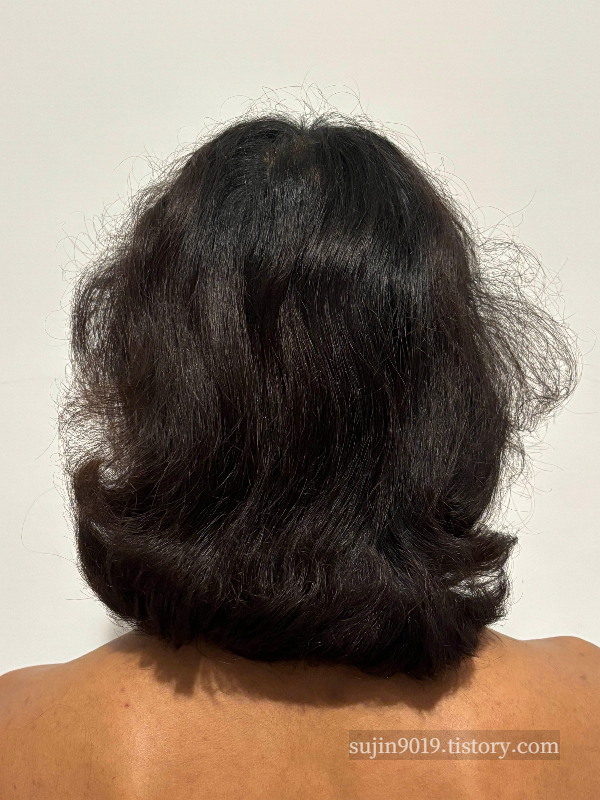 순간 가위질 잘못해서 한 쪽이 확 짧아졌고, 약 4센치 정도 되는 길이임에도 불구하고 그는 세상 본 적 없는 차가운 표정을 지었다. 겁을 먹은 나는 머뭇거리며 그냥 끝에만 다듬으며 눈치를 살폈다. 게다가 시간상 급하게 마무리 지어야 해서 결국 이도저도 아닌 채 마무리를 지어야 했다.